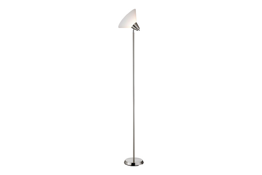Neat and sleek, the Swivel Floor Lamp by Adesso offers a modern geometric vibe with its clean lines and almost angular shade shape. Available in your choice of bold finishes, the Swivels stands at almost six feet and is topped by a durable acrylic shade that adjusts both horizontally and vertically. Its an easy piece to fit into almost any aesthetic and with its accessible price, a sensible solution to stylish lighting throughout the home or office.