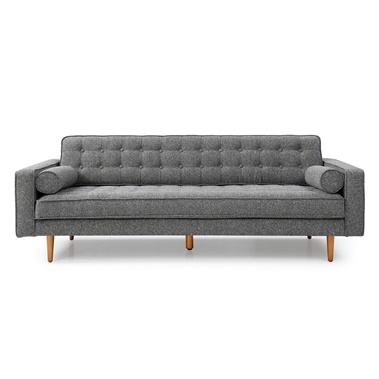 The Elaine's distinct shape can be traced back to mid-20th century Scandinavian influences. Its appreciation for simplicity, organic forms and for its materials were signature characteristics exhibited in the works of designers like Finn Juhl, Hans Wegner and Torben Lind. A centuries-old technique, tufting, was a favorite among notable designers of modern furniture, from the Bauhaus period to present-day. From Le Corbusier and Van Der Rohe to Hans Wegner and Ducaroy, the times have proven that clean lines and accented button tufting never goes out of style. While many of the distinguished works produced by such makers remain available today at a premium, the Elaine Sofa provides an iconic look at an unparalleled value.