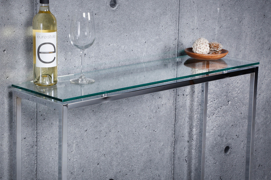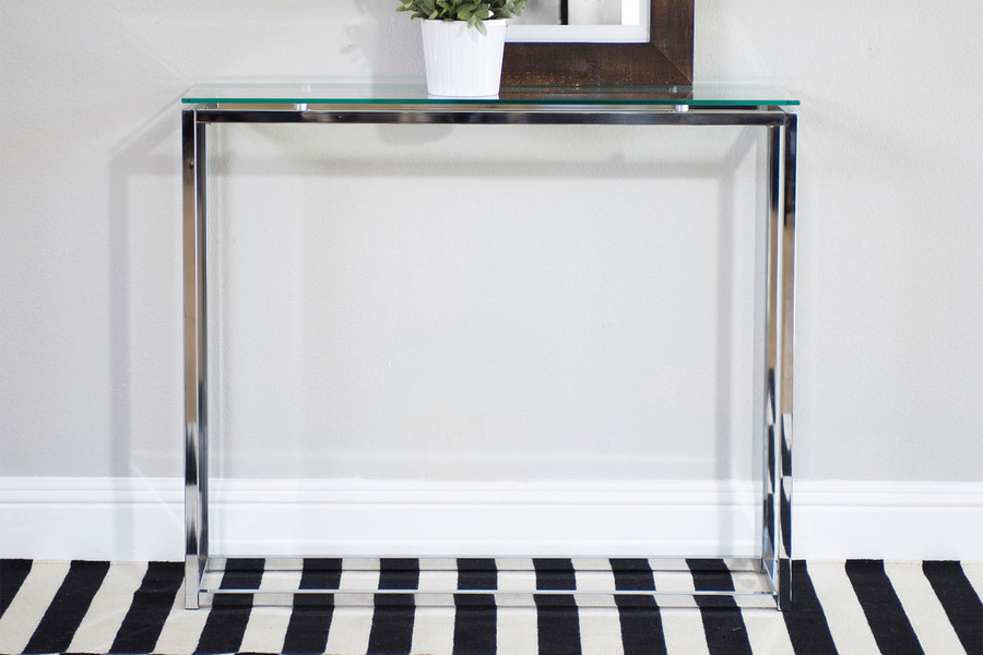 Choose your tempered glass finish for the Sandor Console Table. The stellar steel frame in chrome steel adds striking design and clean lines. This is one to love!