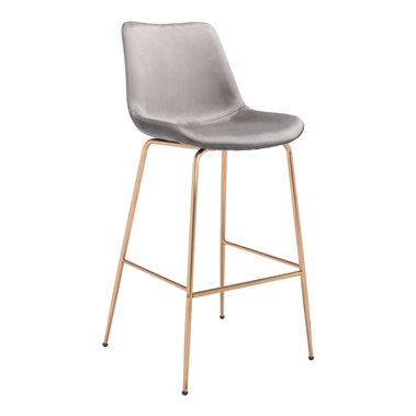 Soft contours with a smooth velvet touch make counter style dining a luxurious experience. This modern counter stool has a comfortable ergonomic seat lightly padded with lush cushioning. Its glamourous velvet blend upholstery features matching accent stitching emphasizing its subtle curves and clean modern appearance. Its lustrous gold-finished, electroplated steel base is attractive and supportive. Its base includes a matching steel footrest with additional stretchers providing convenience and reinforced strength. It comes in a selection of velvet fabric colors for you to choose from.