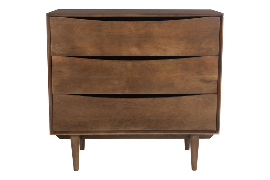 Bringing you both beauty and bedroom basics, the Monterey 3-Drawer Dresser will transform your space from mess to yes! This gorgeous sustainably harvested mango wood dresser is a breathtaking version of blended popular styles, including boho chic, rustic contemporary and modern farmhouse. It is made in the exotic regions of India with exquisite craftsmanship shown through its visibly unique wood grain. It features a roomy 3-drawer design with stylish cut-out handles to comfortably store all of your essentials. Its conical 4-legged base design provides exceptional stability and support. Its spacious top allows for a multitude of items to be displayed on the same surface. You also have the option to choose from a variety of finishes to meet your style preference. The Monterey 3-Drawer Dresser will bring touches of warmth and sophistication to your bedroom design.